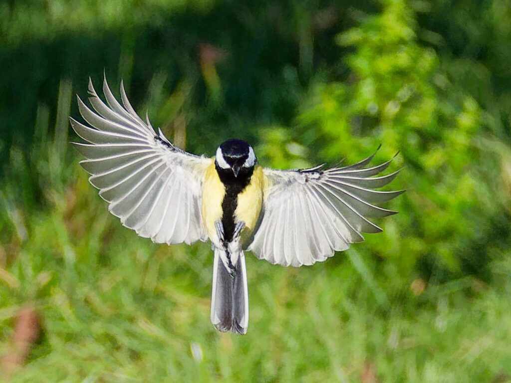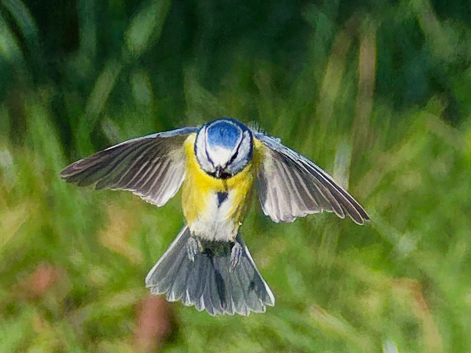 j’ai placé des graines et des vers séchés en avant de mon cerisier, avec une mise au point préréglée juste un peu avant la nourriture. Vitesse 1/5000. Je voulais saisir l’instant juste avant la fin du vol ou la mésange freine et écartent complètement les ailes, comme un avion qui sort ses flaps. Beaucoup de photos floues ou mal positionnées, mais j’y suis parvenu en 2 heures.