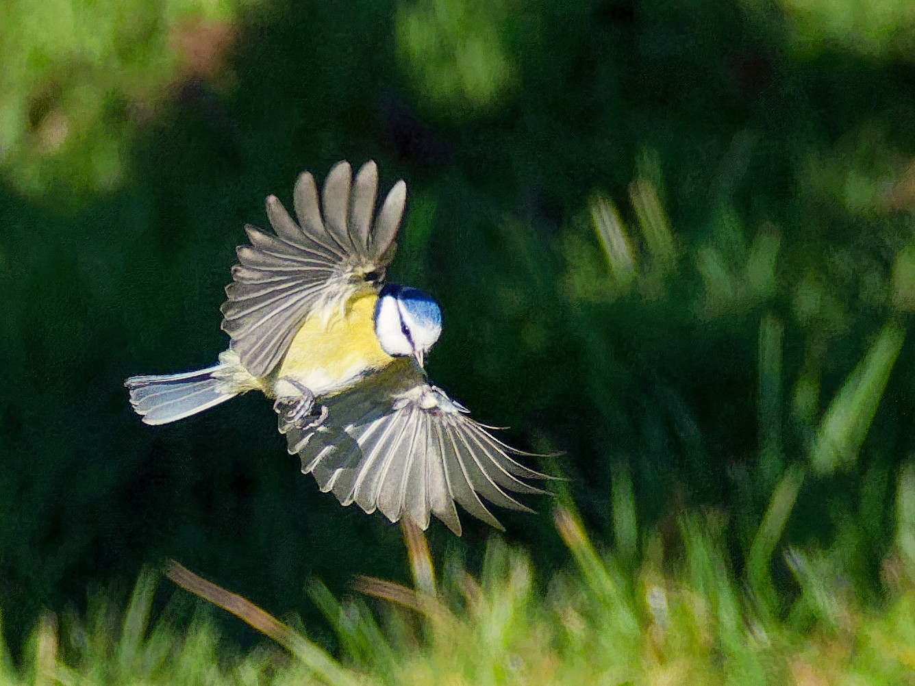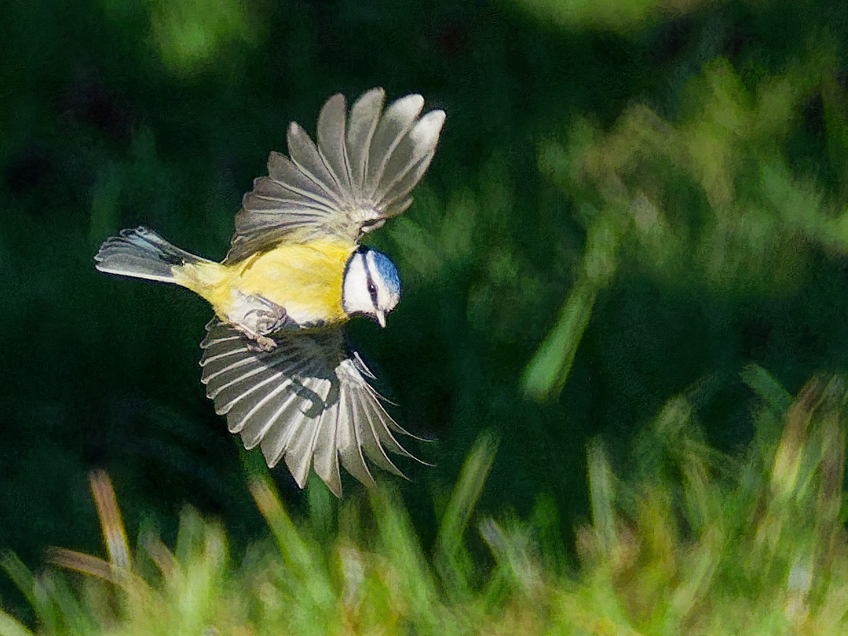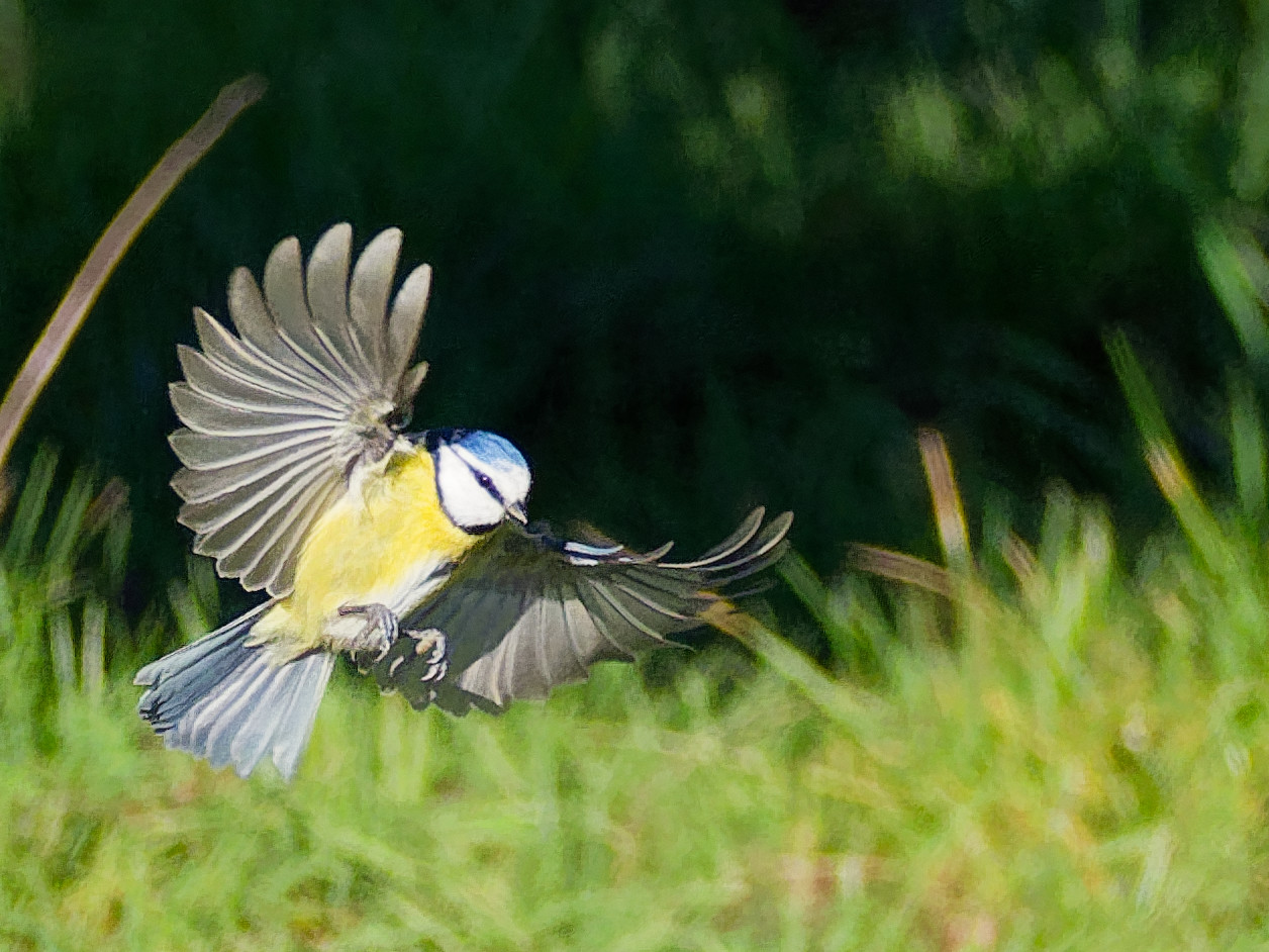 j’ai placé des graines et des vers séchés en avant de mon cerisier, avec une mise au point préréglée juste un peu avant la nourriture. Vitesse 1/5000. Je voulais saisir l’instant juste avant la fin du vol ou la mésange freine et écartent complètement les ailes, comme un avion qui sort ses flaps. Beaucoup de photos floues ou mal positionnées, mais j’y suis parvenu en 2 heures.