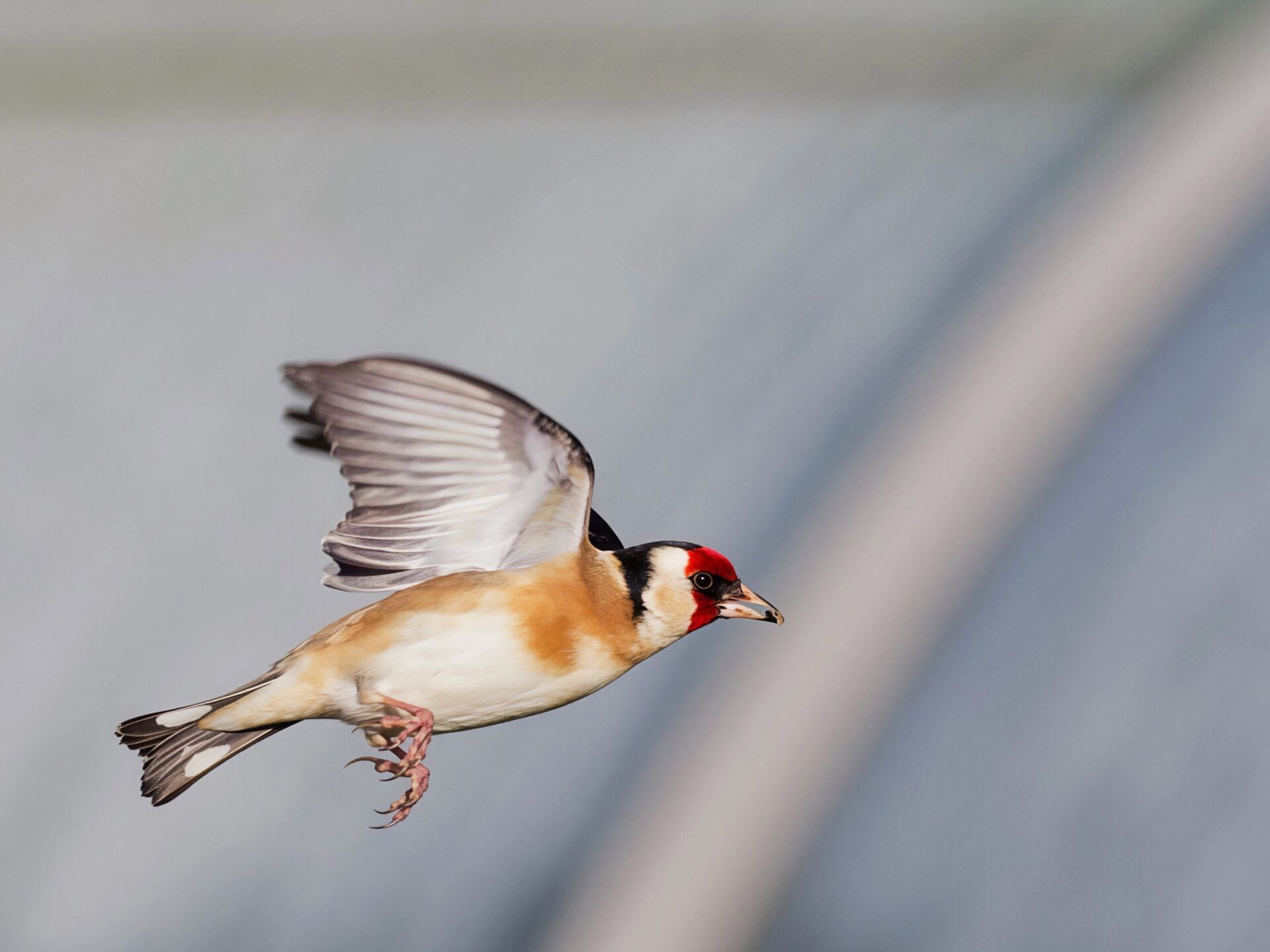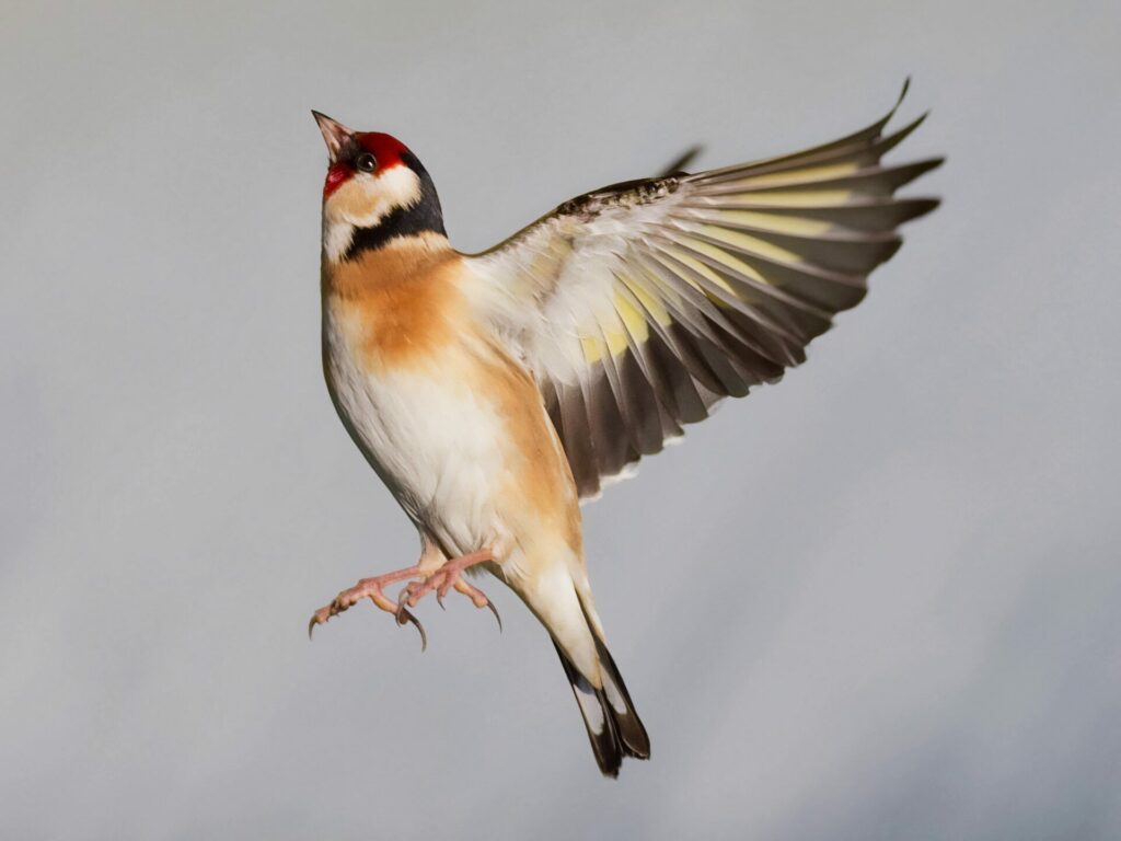 Attiré par des graines de tournesol, l’oiseau décolle devant mon télé objectif 200 mm distant de 4 mètres; Rafales à 60 img/sec et 1/3200 ème sec sont nécessaires pour capturer l’instant très rapide.