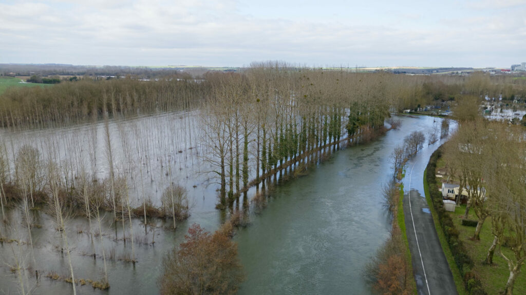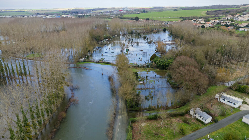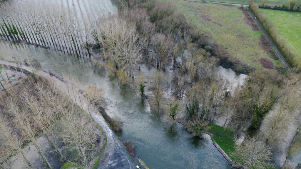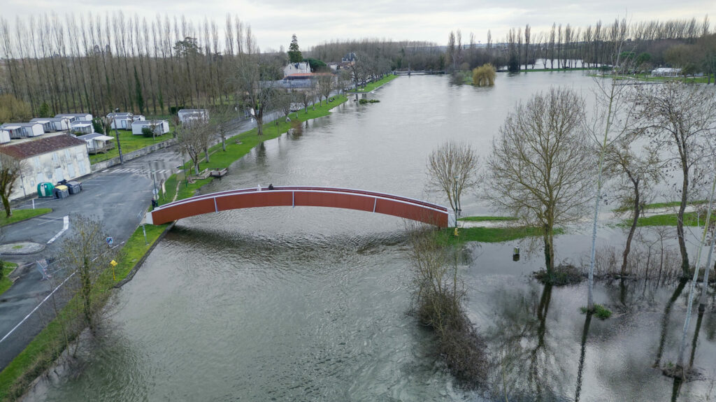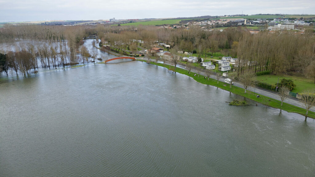 La rivière Boutonne est en crue depuis plusieurs jours, la tempête Niels et les fortes pluies n’arrangent pas la situation. Le drone permet de bien prendre conscience de l’importance de ce phénomène.