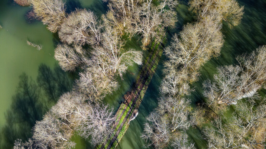 Voie romaine ou chaussée saint James entre taillebourg et port d’envaux, désormais fermée à la circulation. Cette route a été construite au XIIème siècle sur une ancienne voie romaine qui, elle, n’était pas surélevée.