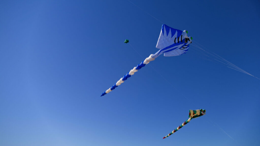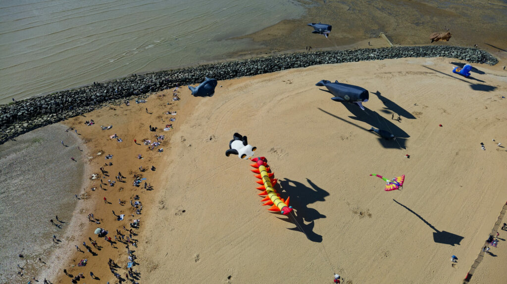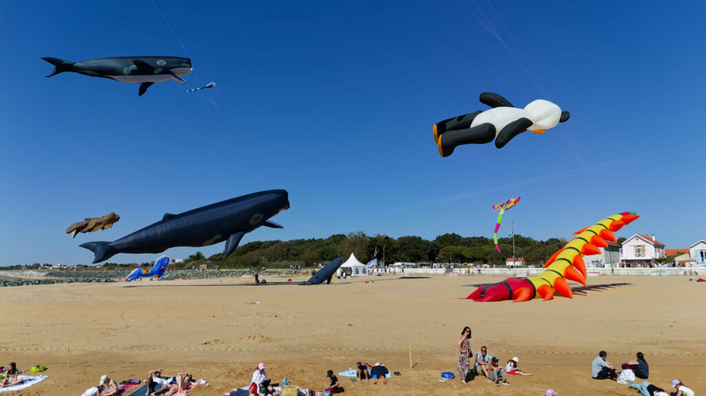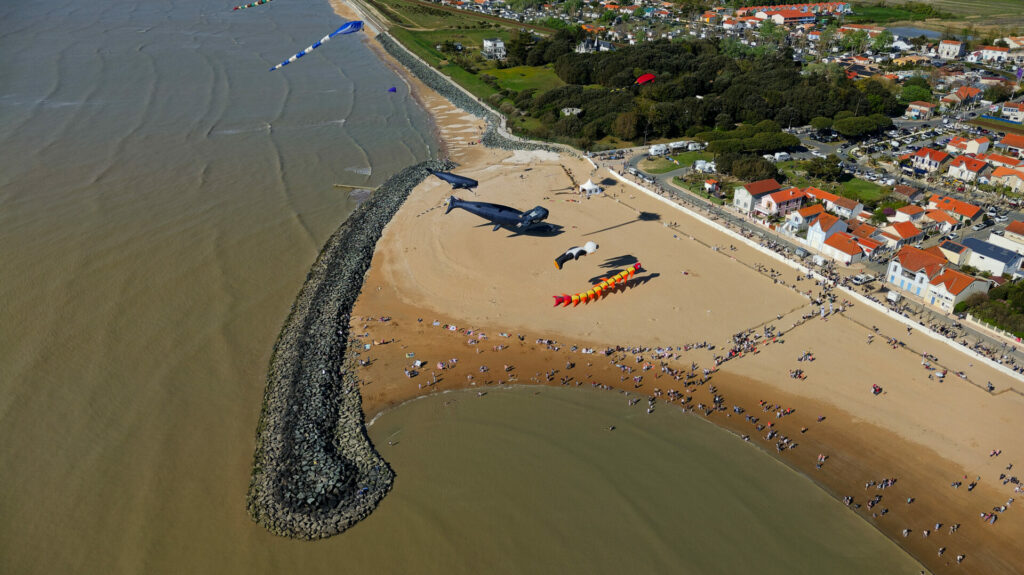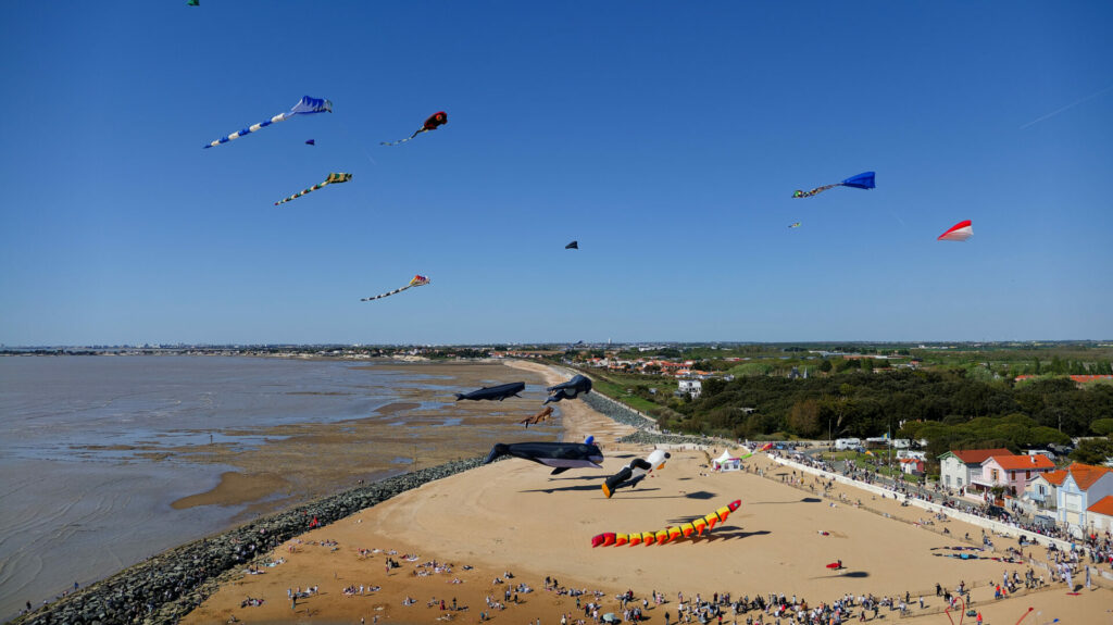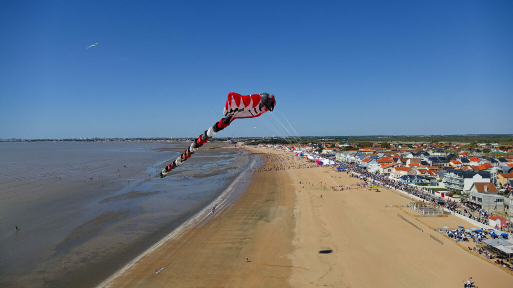 Chaque année, ce spectacle est renouvelé avec plus de 800 cerfs-volants, et une météo idéale, ciel bleu et vent calme. Le drone offre une vision différente de celle obtenue depuis la plage. J’évite le survol de la plage et surtout je fais attention aux fils des cerfs-volants, invisibles et sources de crash du Drone !